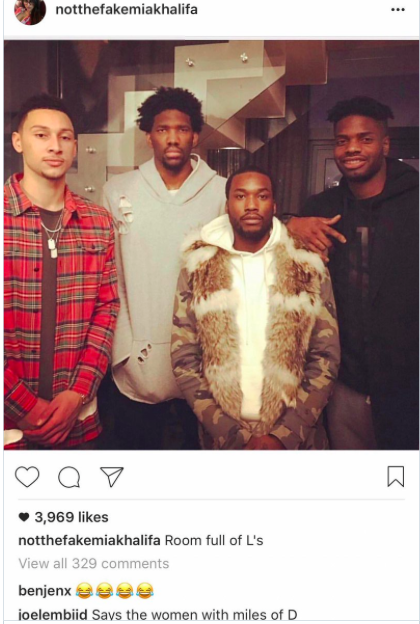 En Instagram ya ha dejado algún intercambio de palabras subidos de tono con la actriz de cine para adultos Mia Khalifa, cuando ella comentó una foto de Joel junto a Noel, Simmons y el rapero Meek Mill diciendo “a room full of L’s” una habitación llena de perdedores, él, ni corto ni perezoso, respondió con un “says the woman with miles of D” lo dice la mujer con miles de pe**s.